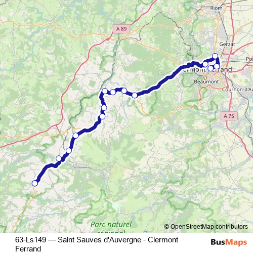 Services on the 63-Ls149 - Saint Sauves d'Auvergne - Clermont Ferrand bus start at 05:40 on lunes, viernes.