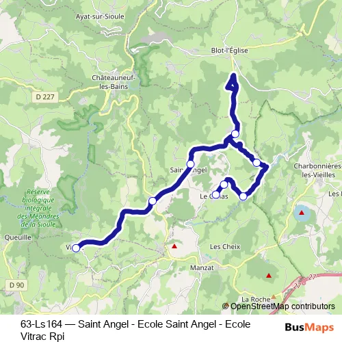 Click here to view the nearest 63-Ls164 - Saint Angel - Ecole Saint Angel - Ecole Vitrac Rpi bus stop.