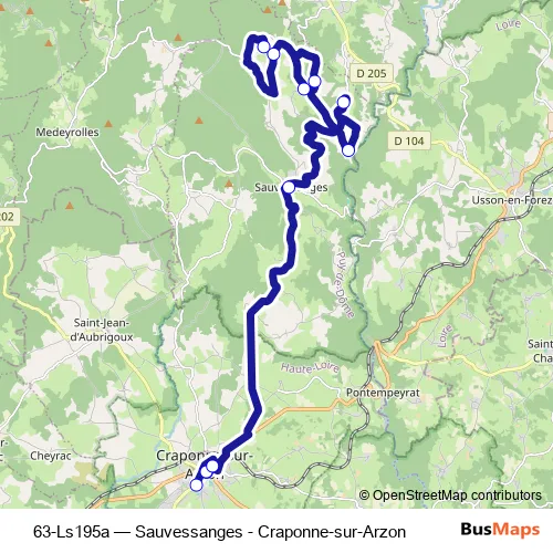 The first stop of the 63-Ls195a bus route is Collège Public Craponne and the last stop is Besse. 63-Ls195a (Sauvessanges - Craponne-sur-Arzon) is operational during entre semana.