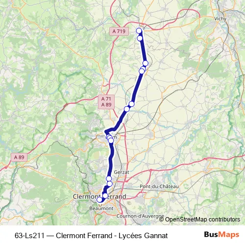 See why over 2 million users trust and consider busmaps.com as the best public transport website. busmaps gives you Riom Buses suggested routes, real-time bus tracker, line route maps in Riom, and helps to find the closest 63-Ls211 bus stops near you. No internet available? Download an offline PDF map and bus schedule for the 63-Ls211 bus to take on your trip.