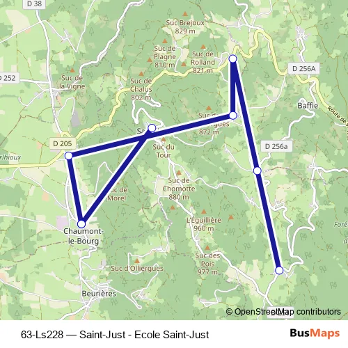 The first stop of the 63-Ls228 bus route is Ecole Chaumont le Bourg and the last stop is Le Cros. 63-Ls228 (Saint-Just - Ecole Saint-Just) is operational during todos los días.