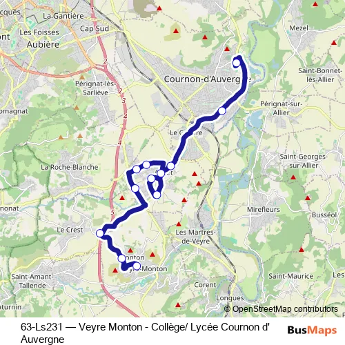 Click here to view the nearest 63-Ls231 - Veyre Monton - Collège/ Lycée Cournon d'Auvergne bus stop.