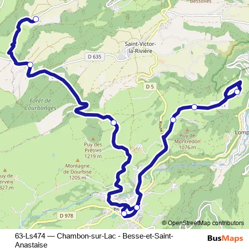 The first stop of the 63-Ls474 bus route is Ecole Besse and the last stop is Montaleix. 63-Ls474 (Chambon-sur-Lac - Besse-et-Saint-Anastaise) is operational during entre semana.