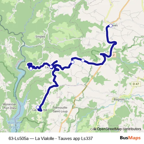 Click here to view the nearest 63-Ls505a - La Vialolle - Tauves app Ls337 bus stop.
