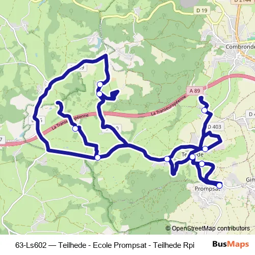 Bus 63-Ls602 - Teilhede - Ecole Prompsat - Teilhede Rpi in Riom: Stops & Timetable