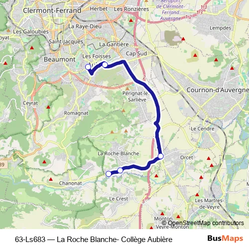 Bus 63-Ls683 - La Roche Blanche- Collège Aubière in La Roche-Blanche: Stops & Timetable