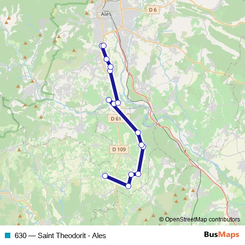 Click here to view the nearest 630 - Saint Theodorit - Ales bus stop.