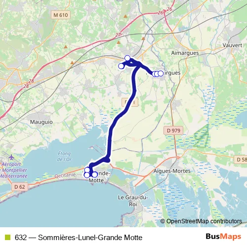 Click here to view the nearest 632 - Sommières-Lunel-Grande Motte bus stop.