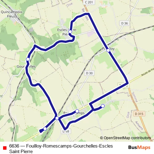 Bus 6636 - Fouilloy-Romescamps-Gourchelles-Escles Saint Pierre in Romescamps: Stops & Timetable