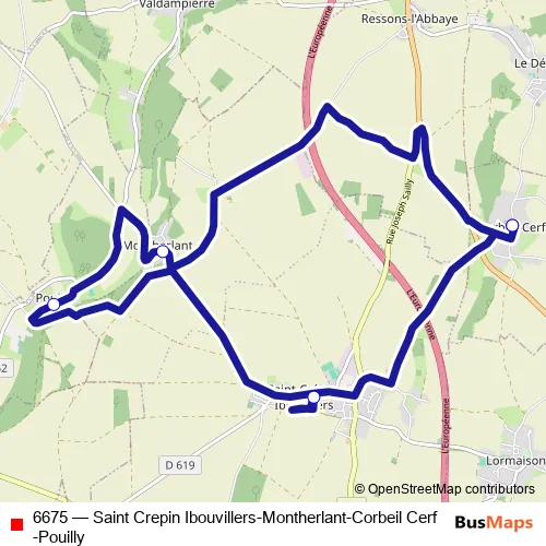 Click here to view the nearest 6675 - Saint Crepin Ibouvillers-Montherlant-Corbeil Cerf-Pouilly bus stop.
