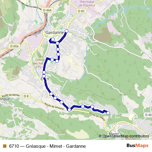 Click here to view the nearest 6710 - Gréasque - Mimet - Gardanne bus stop.