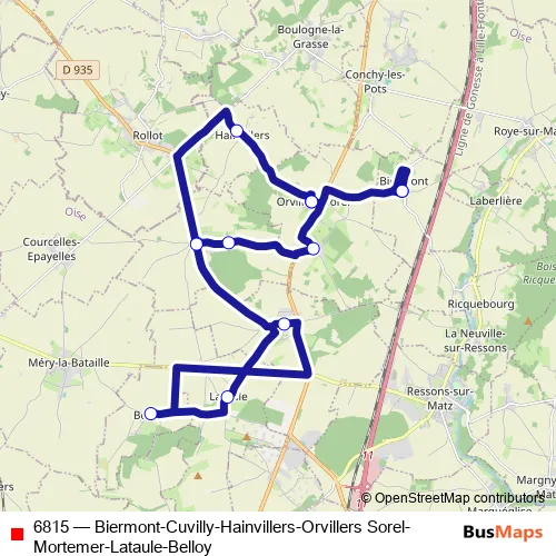 Click here to view the nearest 6815 - Biermont-Cuvilly-Hainvillers-Orvillers Sorel-Mortemer-Lataule-Belloy bus stop.