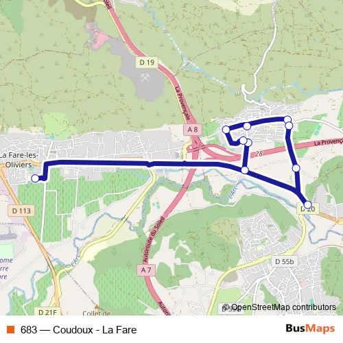 Click here to view the nearest 683 - Coudoux - La Fare bus stop.