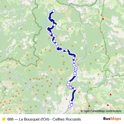 Click here to view the nearest 688 - Le Bousquet d'Orb - Ceilhes Rocozels bus stop.