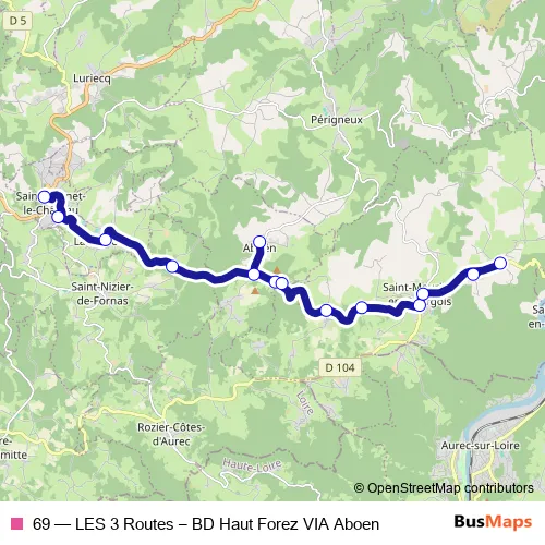 Bus 69 - LES 3 Routes – BD Haut Forez VIA Aboen in Saint-Maurice-en-Gourgois: Stops & Timetable