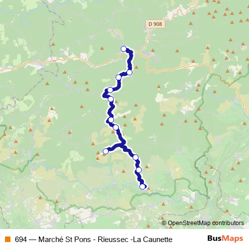 Click here to view the nearest 694 - Marché St Pons - Rieussec -La Caunette bus stop.