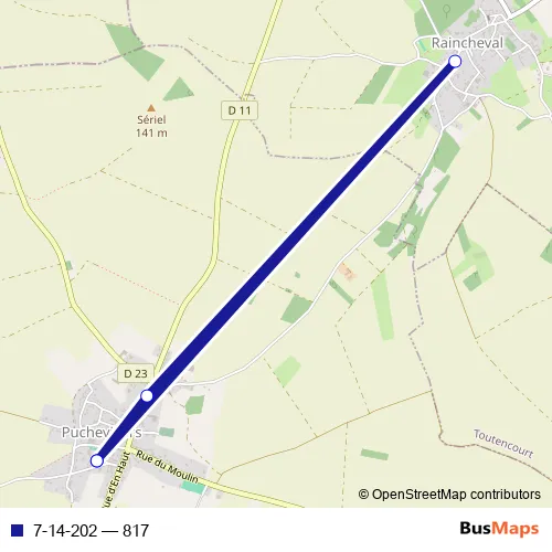The first stop of the 7-14-202 bus route is Puchevillers - Ecole - 14 Rue des Prieurs and the last stop is Puchevillers - Ecole - 14 Rue des Prieurs. 7-14-202 (817) is operational during todos los días.