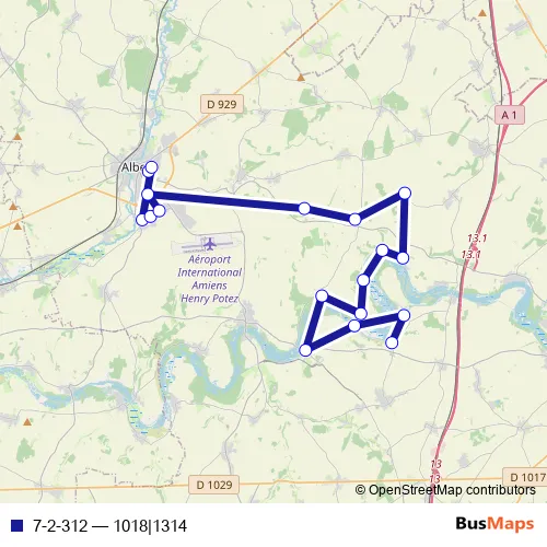 The first stop of the 7-2-312 bus route is Albert - Lycée Lamarck and the last stop is Frise - Chemin croisé. 7-2-312 (1018|1314) is operational during todos los días.