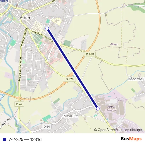 The first stop of the 7-2-325 bus route is Meaulte - Aérospatiale and the last stop is Albert - Lycée Lamarck. 7-2-325 (1231d) is operational during todos los días.