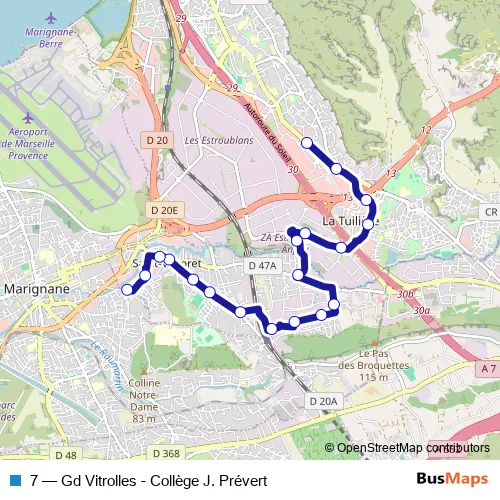 Click here to view the nearest 7 - Gd Vitrolles - Collège J. Prévert bus stop.