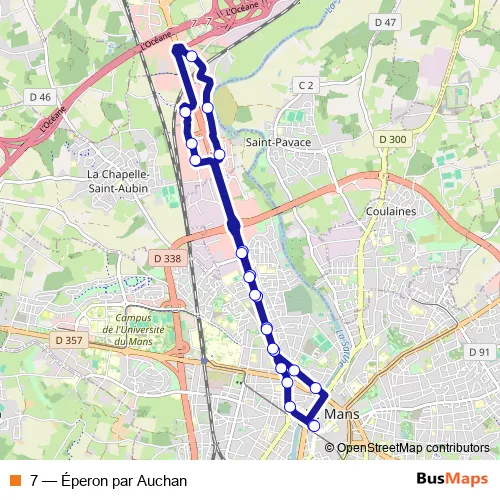See why over 2 million users trust and consider busmaps.com as the best public transport website. busmaps gives you Le Mans Buses suggested routes, real-time bus tracker, line route maps in Le Mans, and helps to find the closest 7 bus stops near you. No internet available? Download an offline PDF map and bus schedule for the 7 bus to take on your trip.