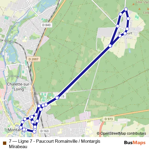 Click here to view the nearest 7 - Ligne 7 - Paucourt Romainville / Montargis Mirabeau bus stop.