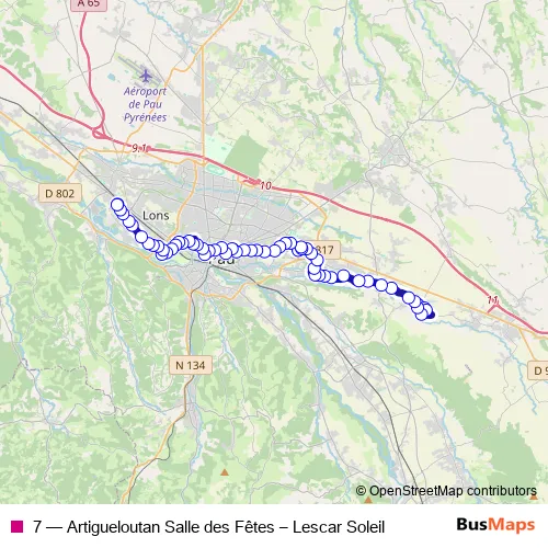 Click here to view the nearest 7 - Artigueloutan Salle des Fêtes – Lescar Soleil bus stop.