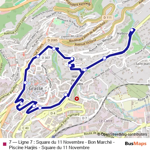Bus 7 - Ligne 7 : Square du 11 Novembre - Bon Marché - Piscine Harjès - Square du 11 Novembre: Full Schedule in Grasse