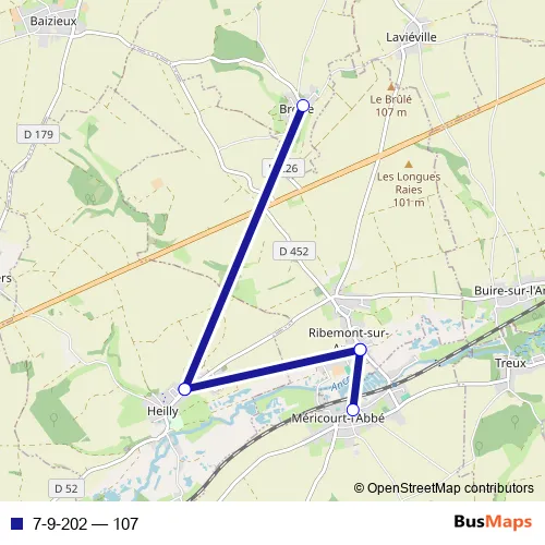 The first stop of the 7-9-202 bus route is Bresle - Centre and the last stop is Heilly - Ecole. 7-9-202 (107) is operational during todos los días.
