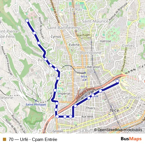 Bus 70 - Urfé - Cpam Entrée: Full Schedule in Nice