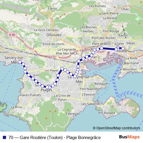 70 Bus - Gare Routière (Toulon) - Plage Bonnegrâce