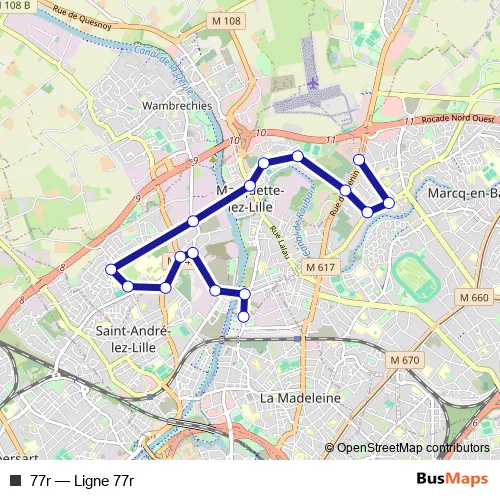 See why over 2 million users trust and consider busmaps.com as the best public transport website. busmaps gives you Lille Buses suggested routes, real-time bus tracker, line route maps in Lille, and helps to find the closest 77r bus stops near you. No internet available? Download an offline PDF map and bus schedule for the 77r bus to take on your trip.