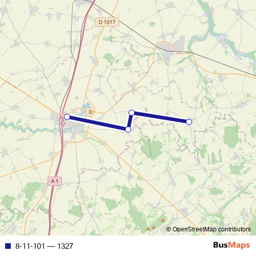 The first stop of the 8-11-101 bus route is Ercheu - Abri école and the last stop is Roye - Collège Louise Michel. 8-11-101 (1327) is operational during todos los días.