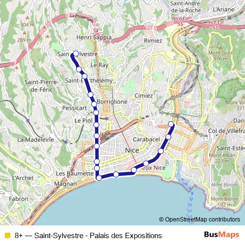 Bus 8+ - Saint-Sylvestre - Palais des Expositions: Full Schedule in Nice