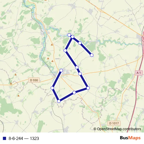 The first stop of the 8-6-244 bus route is Montdidier - Parking Collège et Lycée and the last stop is Lignieres - Mairie. 8-6-244 (1323) is operational during todos los días.