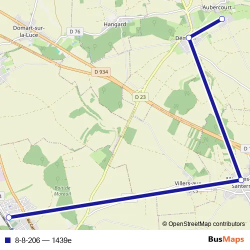 The first stop of the 8-8-206 bus route is Moreuil - Collège Jean Moulin and the last stop is Demuin - Courcelles. 8-8-206 (1439e) is operational during todos los días.