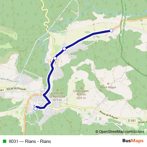 The first stop of the 8031 bus route is Ecole Primaire and the last stop is Plan de Valaves. 8031 (Rians - Rians) is operational during todos los días.