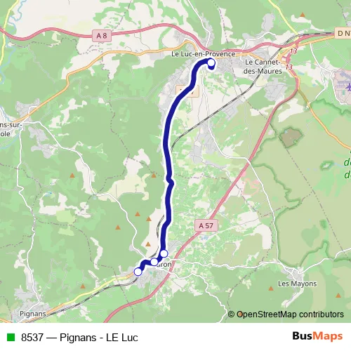 Click here to view the nearest 8537 - Pignans - LE Luc bus stop.