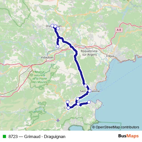 Bus 8723 - Grimaud - Draguignan: Full Schedule in Sainte-Maxime