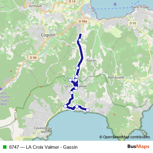 See why over 2 million users trust and consider busmaps.com as the best public transport website. busmaps gives you La Croix-Valmer Buses suggested routes, real-time bus tracker, line route maps in La Croix-Valmer, and helps to find the closest 8747 bus stops near you. No internet available? Download an offline PDF map and bus schedule for the 8747 bus to take on your trip.