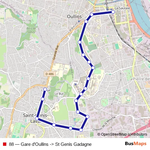 Click here to view the nearest 88 - Gare d'Oullins -> St Genis Gadagne bus stop.