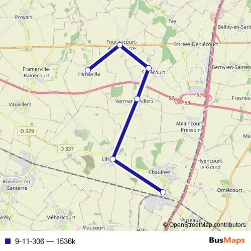 The first stop of the 9-11-306 bus route is Chaulnes - Collège Aristide Briand and the last stop is Herleville - Mairie. 9-11-306 (1536k) is operational during todos los días.