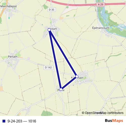 The first stop of the 9-24-203 bus route is Licourt - Mairie - Ecole and the last stop is Licourt - Mairie - Ecole. 9-24-203 (1016) is operational during todos los días.