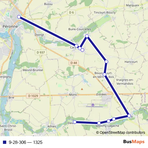 The first stop of the 9-28-306 bus route is Peronne - Lycée P. M. France and the last stop is Devise - Place. 9-28-306 (1325) is operational during entre semana.