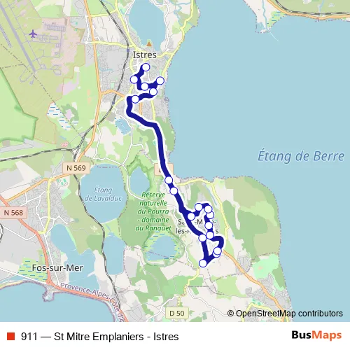Bus 911 - St Mitre Emplaniers - Istres Schedule in Istres