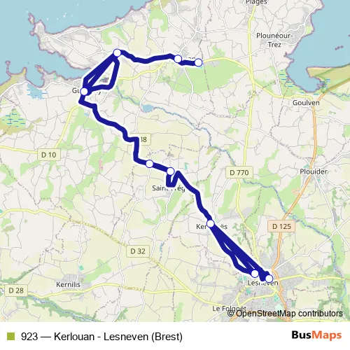 Click here to view the nearest 923 - Kerlouan - Lesneven (Brest) bus stop.