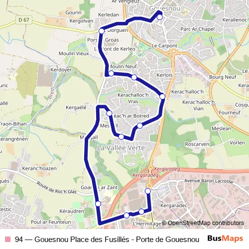 Bus 94 - Gouesnou Place des Fusillés - Porte de Gouesnou: Full Schedule in Brest