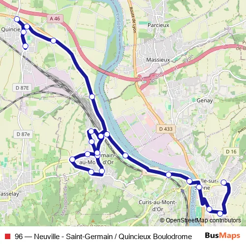See why over 2 million users trust and consider busmaps.com as the best public transport website. busmaps gives you Lyon Buses suggested routes, real-time bus tracker, line route maps in Lyon, and helps to find the closest 96 bus stops near you. No internet available? Download an offline PDF map and bus schedule for the 96 bus to take on your trip.