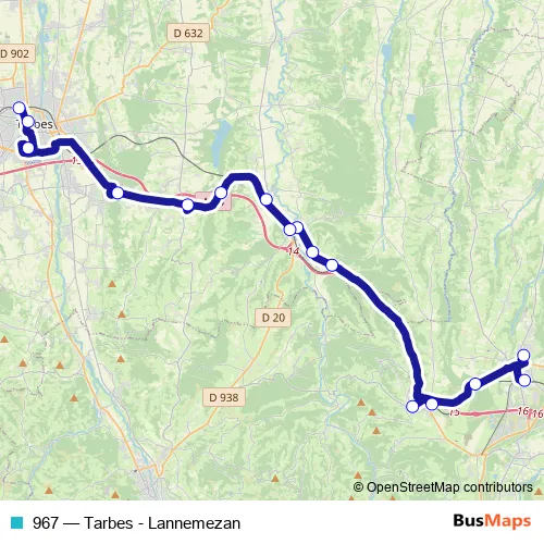 See why over 2 million users trust and consider busmaps.com as the best public transport website. busmaps gives you Tarbes Buses suggested routes, real-time bus tracker, line route maps in Tarbes, and helps to find the closest 967 bus stops near you. No internet available? Download an offline PDF map and bus schedule for the 967 bus to take on your trip.