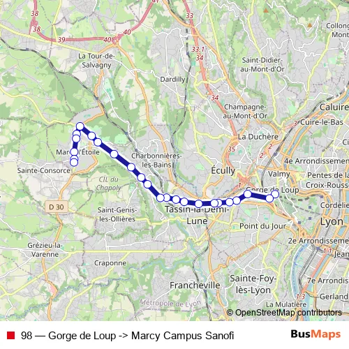 Bus 98 - Gorge de Loup -> Marcy Campus Sanofi Schedule in Lyon
